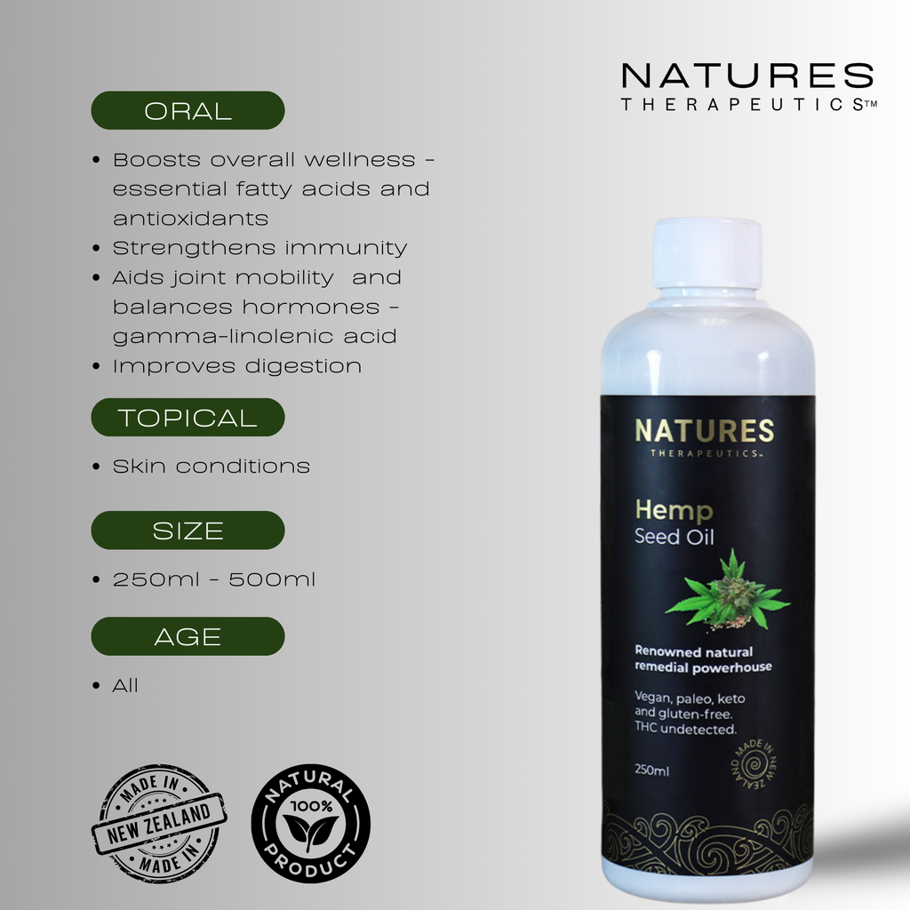 New Zealand grown Hemp Seed Oil (cannabis sativa)