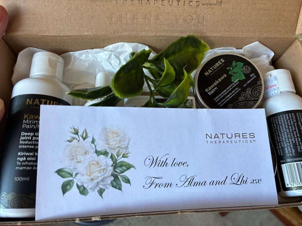 I purchased this as a bereavement gift for a friend. She loves all the products, and especially the mirimiri oil. I personally loved the service I received. This was gifted up with a lovely card and send immediately. My friend really appreciated the gift. Highly recommend this business and their products. I was trying to find the photo of the gift but